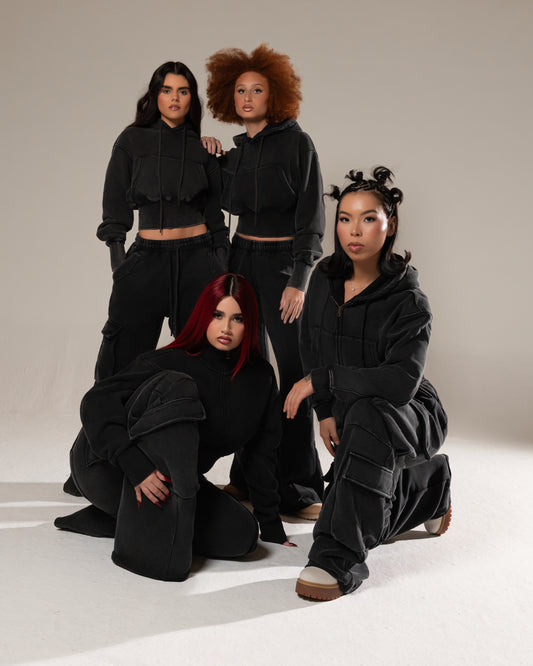 Noir Cargo Cropped Zip Hoodie