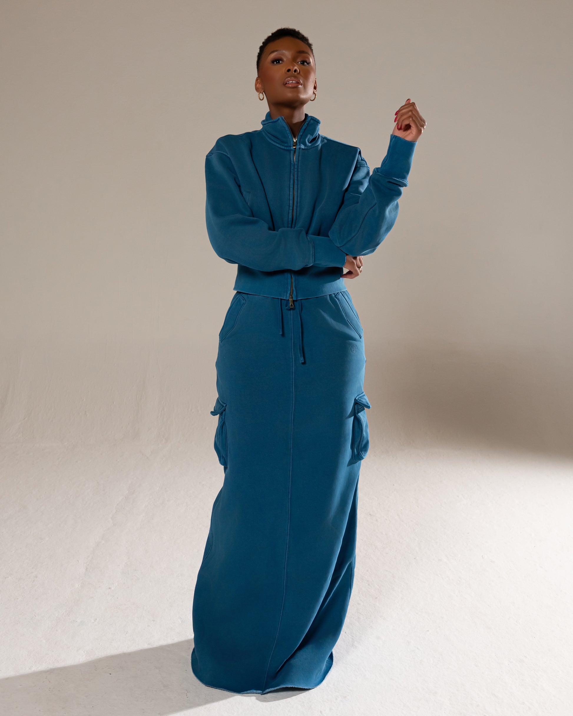 A cargo skirt is a versatile skirt that blends the utility of cargo pants with the feminine silhouette of a skirt. Features large, patch pockets on the sides and two packets on the back. With a back slit. Made from soft cotton and polyester. Features an elastic waistband with adjustable drawstrings. Allowing a customized fit that enhances both comfort and style. Perfect for casual, laid-back aesthetic or can be dressed up and worn fashionable events or for everyday wear.