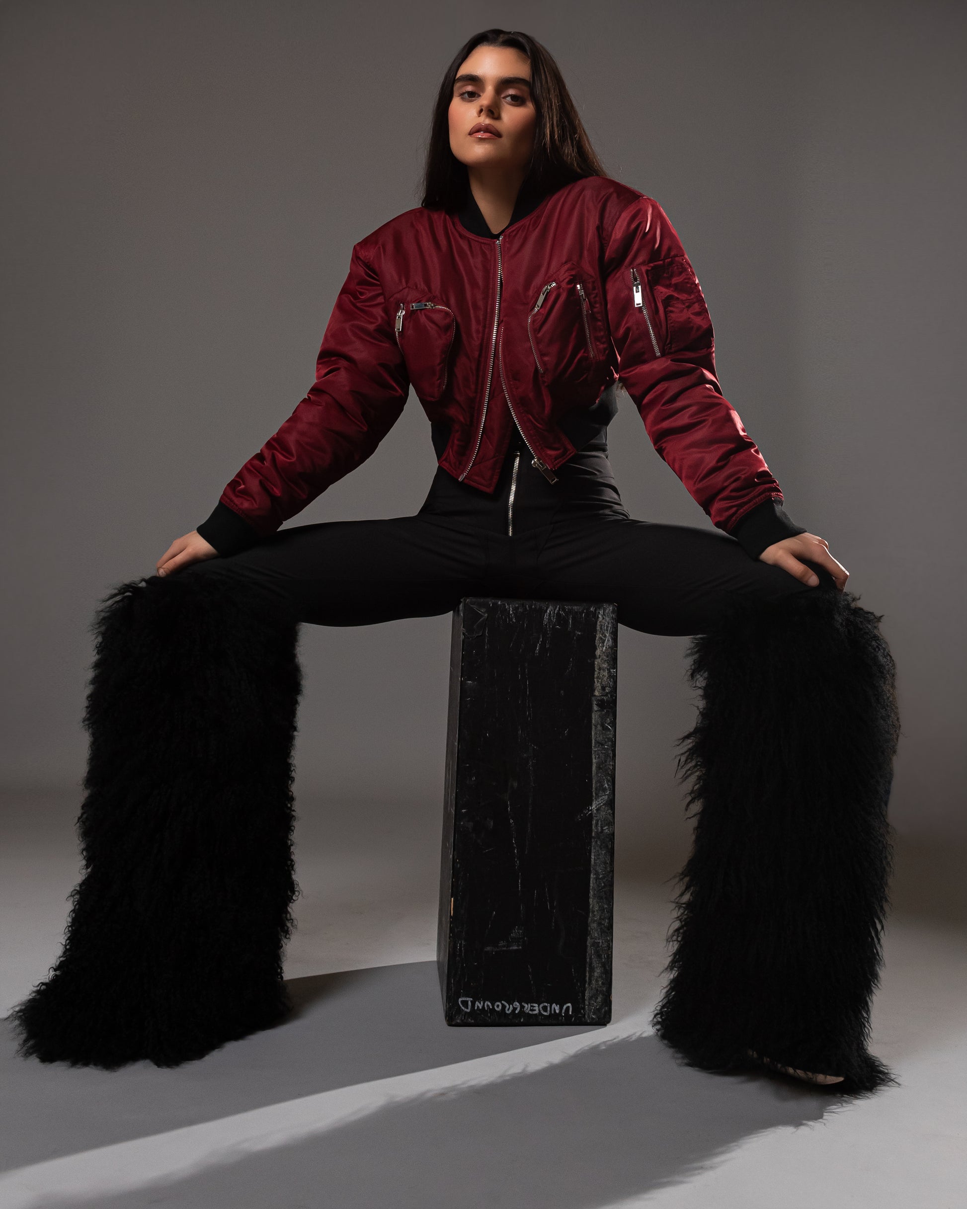 Command attention in the Commander Cropped Bomber — a statement outerwear piece designed for bold comfort and effortless confidence. Crafted with premium heavy-weight fabric, this jacket delivers warmth and structure for the colder seasons while maintaining a sleek, feminine silhouette. Every design detail, from its contoured seams to its bold zipper placements, was made to embody everyday strength and motion.