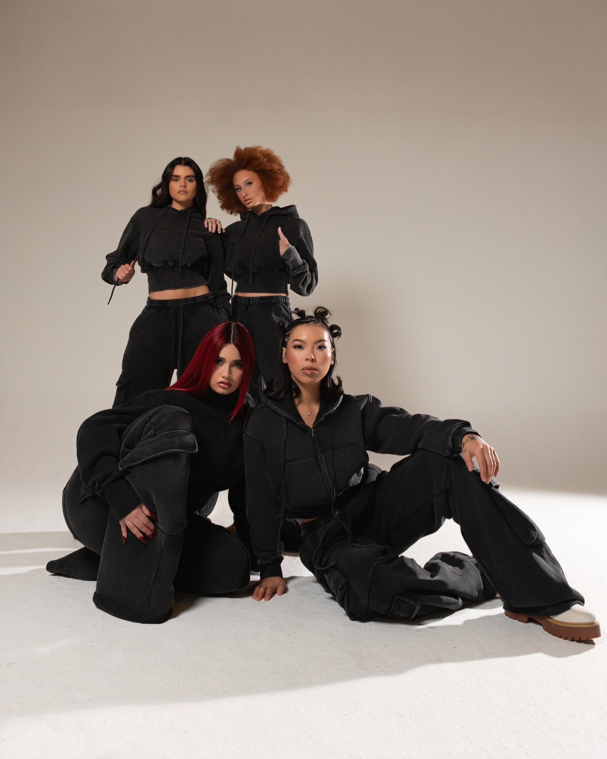 A cropped two-way zipped hoodie combines a trendy, cropped silhouette with versatile, functional features. The two-way zipper allows you to adjust the fit and style by zipping up from the bottom or top, offering multiple styling options for comfort or a more customized look. This design creates a more relaxed silhouette, perfect for pairing with our cargo joggers , cargo skirt or Bella joggers.
